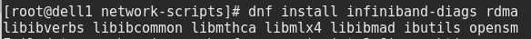 Sen kommer det spännande när vi startar opensm-managern. Efter en del krånglande med NetworkManager där jag inte fick någon ip-adresser på infinibandportarna valde jag att stänga av den tjänsten och i stället köra network.service i stället. Och då fungerar det. Infiniband-enheterna får ip-adresser. Jag kunde få ip-adresser även med NetworkManager i gång men då fick jag ange dem via terminalen. Och så går det inte att ha på en server som kan behöva startas om. Jag kan ju inte ange ip-adresser som bara fungerar så länge som datorn inte har startats om.