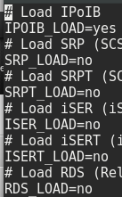 Innan vi kan dra igång opensm-tjänsten måste vi ange att IPoIB (IP over infiniband) ska laddas vid start? Det gör man i filen /etc/rdma/rdma.conf