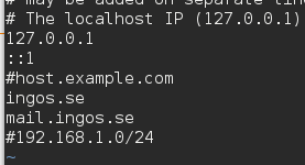 I filen TrustedHosts är det ett absolut måste att ha localhost med först. Den pekar på den egna servern och det är ju vår e-postserver som är med i arbetet med att signera utgående e-post. De andra är jag inte säker på om de behövs. Jag vet bara att här kan man fylla i andra servrar som arbetar under huvudservern för att e-post som skickas med dem också får signerad utgående e-post. Andra har också låtit hela det interna nätverket anges här. I det här fallet har vi förslaget 192.168.0.1/24. Men eftersom den raden är kommenterad är den inte med.