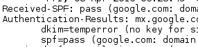 Och då blir resultatet så här när ett brev skickas till gmail. Det står "spf=pass"