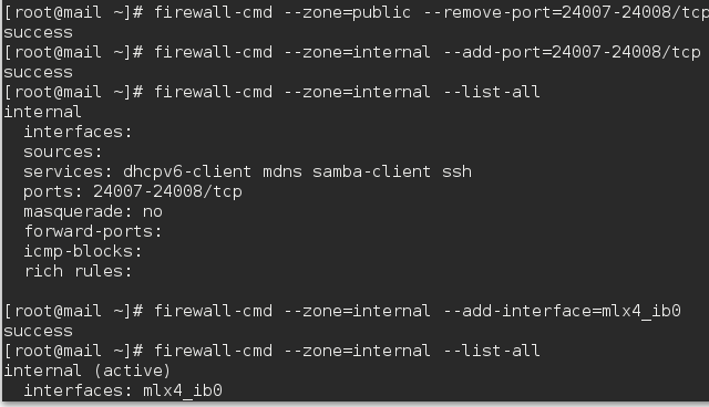 # firewall-cmd --permanent --change-zone=mlx4_ib6 --zone=internal