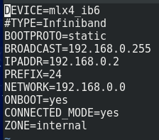 För att få nätverksenheten att förbli i den brandväggszon man önskar efter en omstart behöver man göra ytterligare ändringar. Och det är att redigera i filen för nätverksenheten i /etc/sysconfig/network-scripts/ I det här exemplet är det ifcfg-mlx4_ib6 filen. Lägg till ZONE=internal, eller den zon det gäller. Däremot gick det inte att få att fungera med det här kommandot: