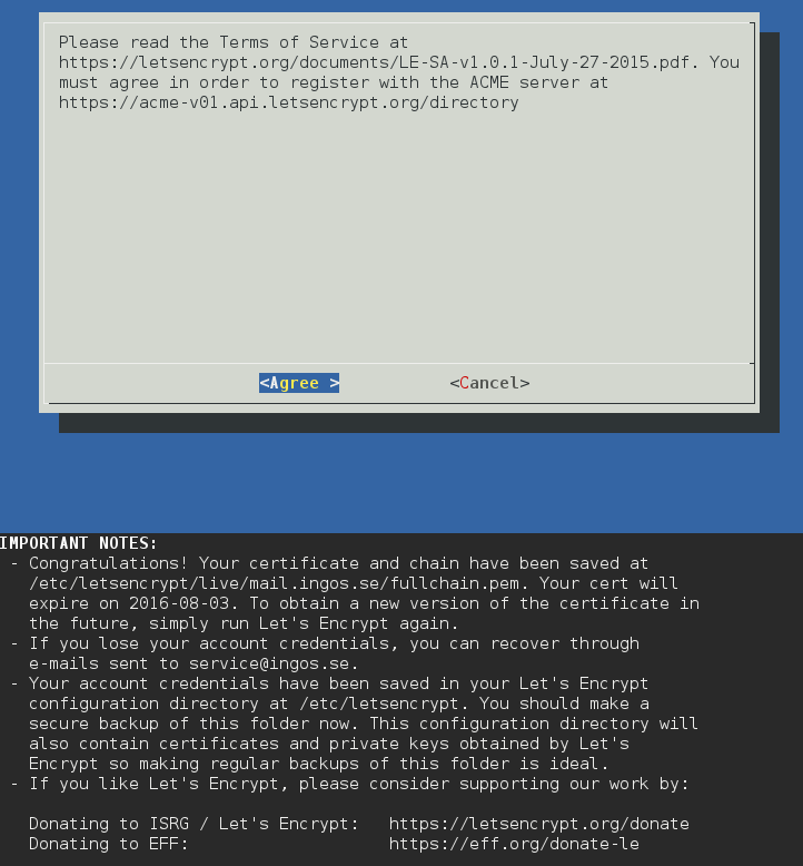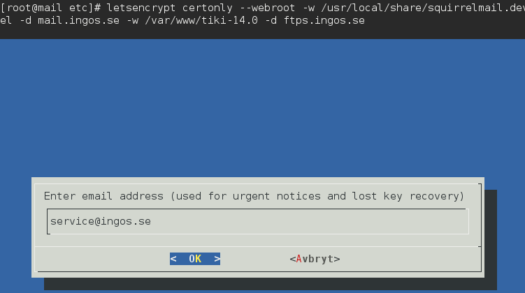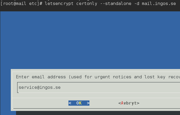 # letsencrypt certonly --standalone -d mail.ingos.se
