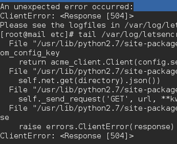 Men det gick illa. Letsencrypt är fortfarande på beta-stadiet i vissa avseenden. Jag gjorde inte några efterforskningar utan tittade bara i loggen. Och jag bestämde mig för att göra...