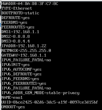 Det kanske allra vanligaste felet är ändock slarvfel i konfigurationsfilerna. Jag hade till exemepel skrivit IPADDRESS="10.0.0.30" i stället för IPADDR osv. Såna fel gör att network.service visserligen kan gå i gång, men inte tilldela enheten en ip-adress. Sen är det bara att aktivera network.service.