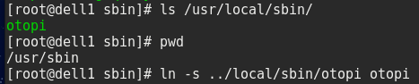 Inte för at jag vet varför till 100 procent, men jag vet att Ovirt använder maven och java-sdk för dessa paket installerade jag innan ovirt skulle byggas från källkod. Men sen blev det nytt krångel. När engine-setup skulle köra sitt installations-skript hittade det inte otopi. Men det ordnade jag med en länk från /usr/sbin/otopi till /usr/local/sbin/otopi där den verkligen fanns. Problemet var att engine-setup letade i /usr/sbin. Länken gjorde jag så som bilden nedan visar och till saken hör att jag befann mig i katalogen /usr/sbin. Det finns dock fler sätt att göra länkar på Men det finns gott om tips på nätet om detta.
