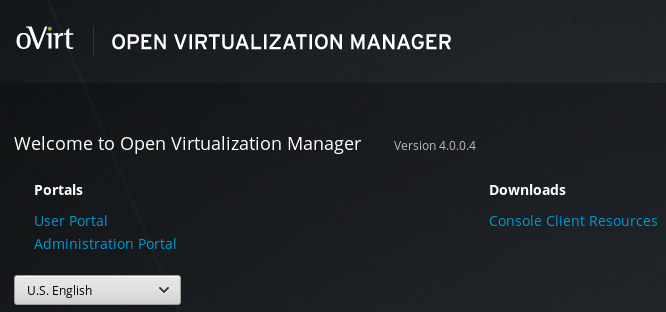 Efter många om och med fungerar det. För att starta gör jag det som följer nedan. Glöm inte att starta postgresql-servern med systemctl. Men jag har installerat en utvecklarversion och det ju inte tanken. Men hur som helst är det i gång i alla fall. Ska bli mycket spännande att utforska Ovirt. Så här ser det ut när man surfar in på webadressen http://dinserversnamn:8080